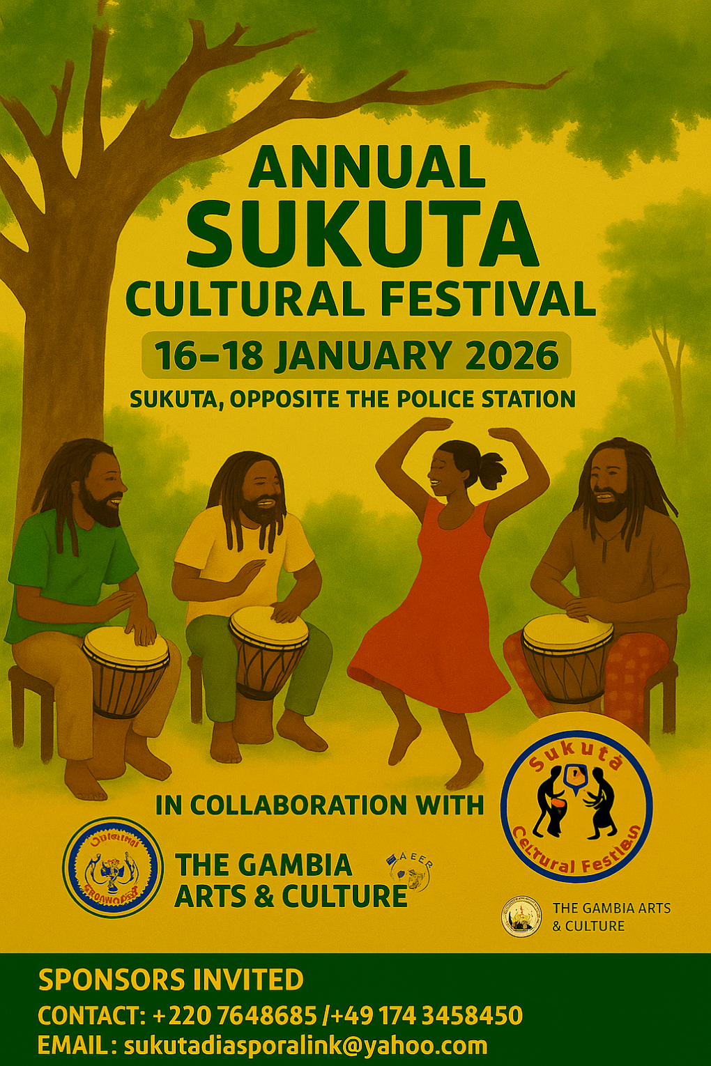 Festivals. Annual Dembadou Cultural Festival is to be held on 23 to 25 January 2026 – over a dozen cultural and dance groups including famous local bands are going to perfom at this event, organised by Sukuta Sanchaba Youth Development Association in Gambia in collaboration with Sukutarians in the diaspora and initiated by Sam Jarju. – Ihr möchtet gerne Festivals in Gambia, Westafrika, erleben? Oder afrikanische Kultur in Sukuta Dembadou kennenlernen? Packt Eure Sachen und begleitet uns Ende Februar nach Gambia, um viel Energie aus dem warmen Sonnenlicht für den langen Winter in Deutschland zu tanken. Kontaktiert uns per E-Mail, für schnelle und einfache Information besucht unsere Seite auf Facebook oder unsere Homepage. Dort könnt Ihr auch Fotos und Videos des letzten Festivals ansehen.